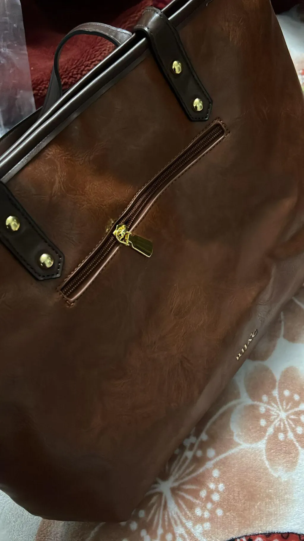 Red Ziro 2 Zipper Shoulder Tote Bag