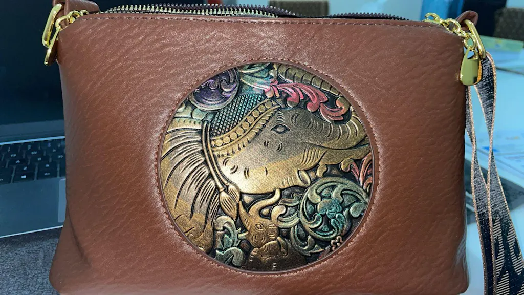 Radiate elegance with the White Elvo 3 Zipper Sling Bag, a symbol of minimal chic and fashion-forward confidence. Made from cruelty-free vegan leather, this designer piece adds a fresh pop to your wardrobe. It features three zippered compartments and a back zipper to keep you organized on the go. The front elephant motif adds an artistic edge, while the wide shoulder strap with “Have a Nice Day” infuses positivity into your everyday ensemble. Ideal for work, weekend brunches, or party-ready looks, this imported fashion bag combines style and practicality effortlessly.